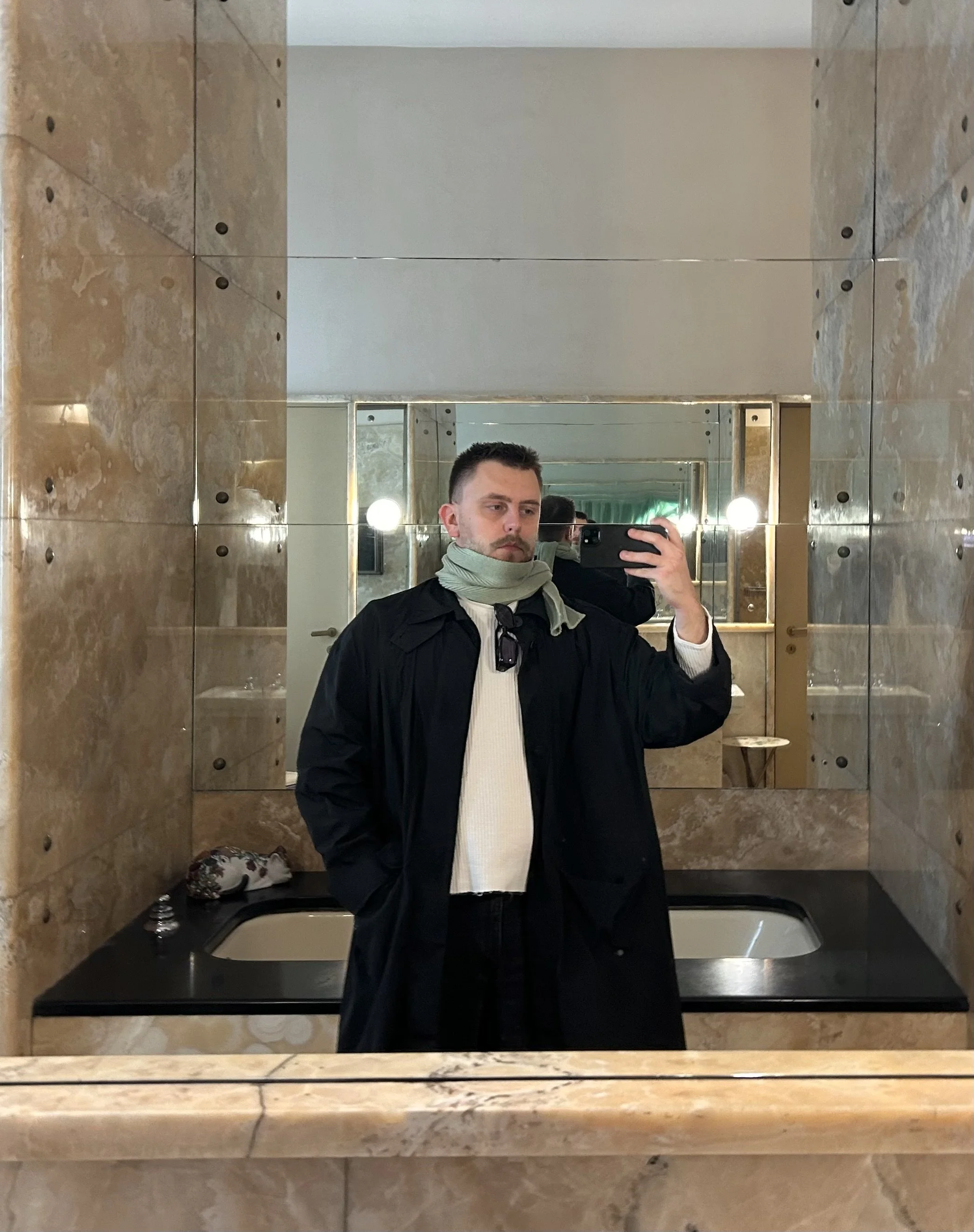 Then, the lights dimmed, and the hard techno started playing. I have to be honest: it took me a while to realise the show’s concept, as I was sitting in the fourth row. That said, once I saw Bella Hadid strutting the runway for the third time, I got it – Miuccia and Raf created a collection based on the removal of layers, using only fifteen models to present sixty looks. This duo knows how to get adrenaline pumping! After the show, I sat at the scene of the crime (that same café) and got to decompress about what I just witnessed – a religious experience of sorts! Now let’s take one more bath to calm down (very Tom Ford of me).