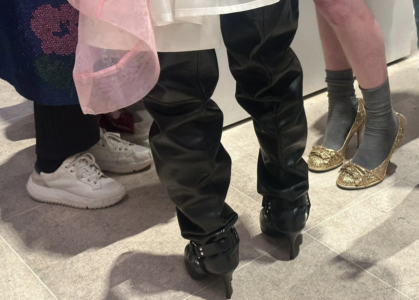 The next day, I actually managed to live a semi-normal life, only going to the August Barron book launch at Dover Street Market. It’s honestly amazing what Benjamin Barron and Bror August Vestbø manage to do – and all in heels too. This latest zine focuses on the collection they showed last October, which was absolutely brilliant. I quickly get overwhelmed by the sheer number of people that fill the Rose Bakery. Not surprisingly, they always attract a (very well-dressed) crowd. Before I leave, I manage to take a picture of the duo talking with the legendary Suzy Menkes, and the contrast between the designers’ glittery heels and leather boots and the writer’s sneakers. Still, not the best picture of Menkes of the season – the picture of her at the Labubu event takes the cake.