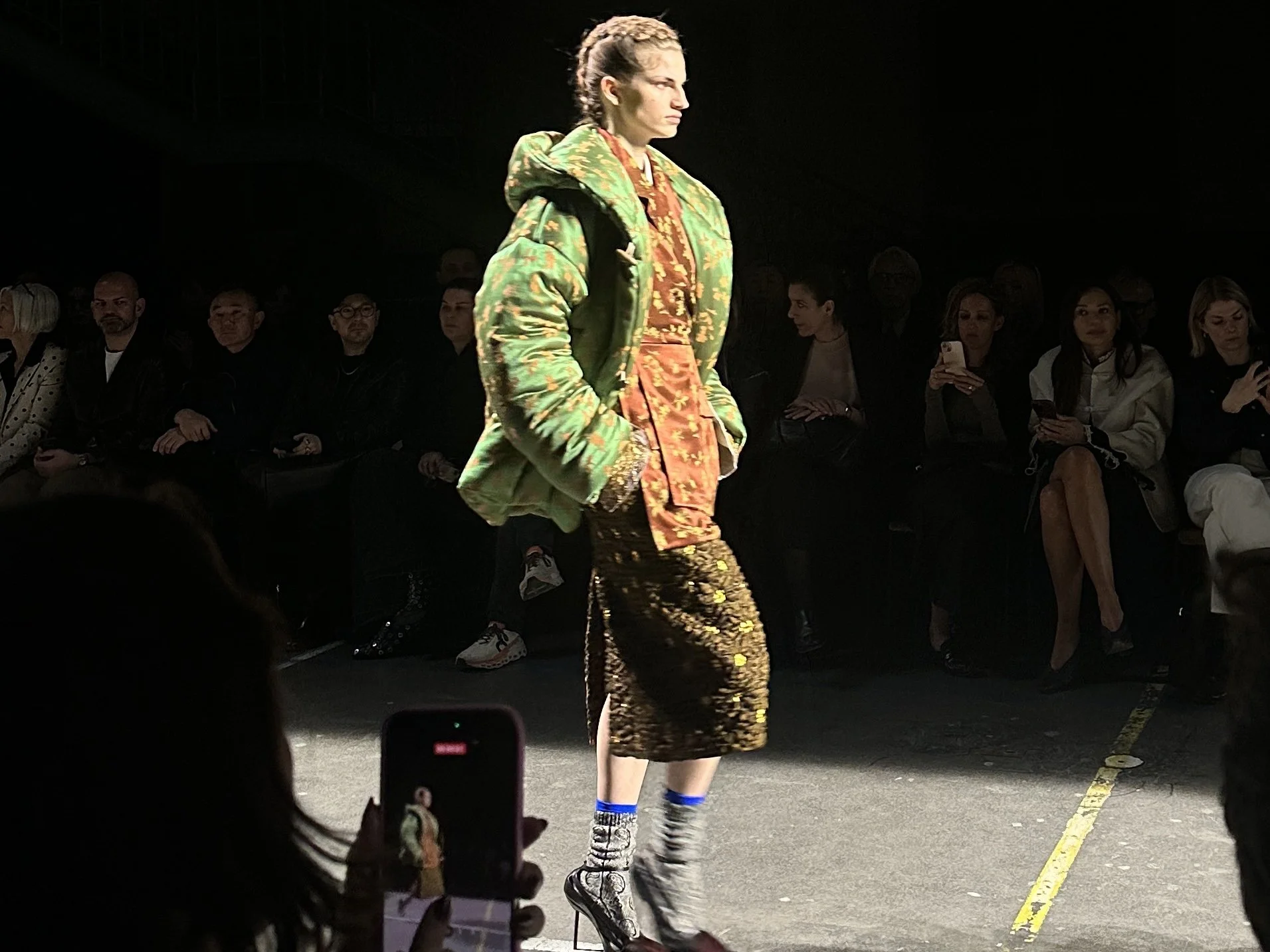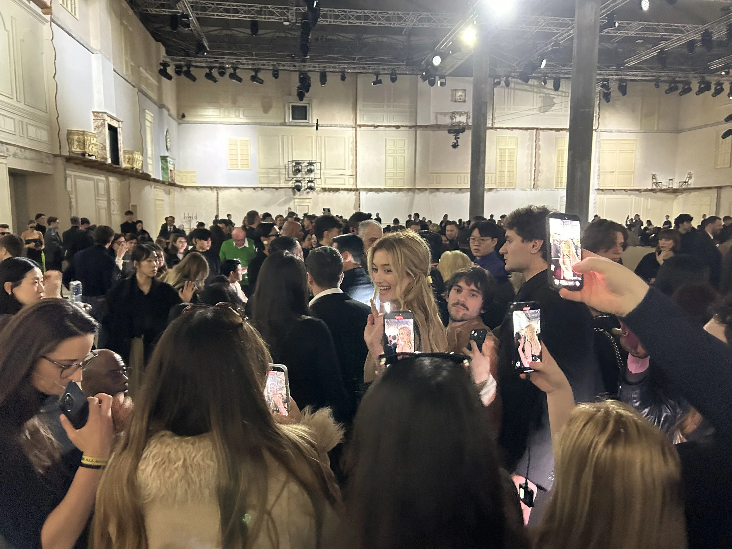 After walking inside (next to Chloe Malle, may I add), I entered the temple that is Fondazione Prada. The space was already crowded, and there was a massive commotion in front of me. It took me a second (I had to take off my sunglasses) to realise it was caused by THE Sarah Pidgeon, AKA the reincarnation of Carolyn Bessette Kennedy. I have been obsessed with Ryan Murphy’s Love Story, and seeing this diva in person made me audibly gasp. She’s my K-pop star!