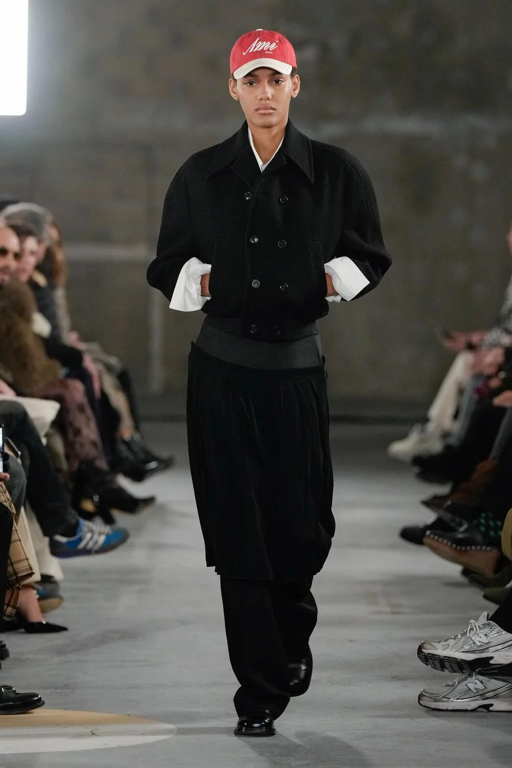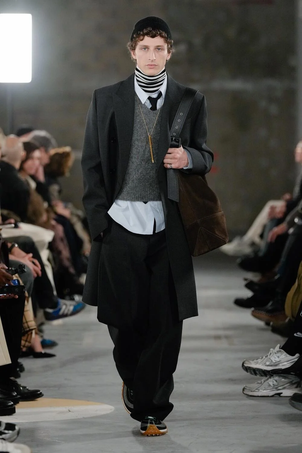 Throughout the years, AMI has mastered the art of layering, and this season was no exception. Shirts under knits and scarves tucked into coats felt purposefully styled rather than messy. The tie was worn in an easygoing, casual way, appearing youthful and creative.