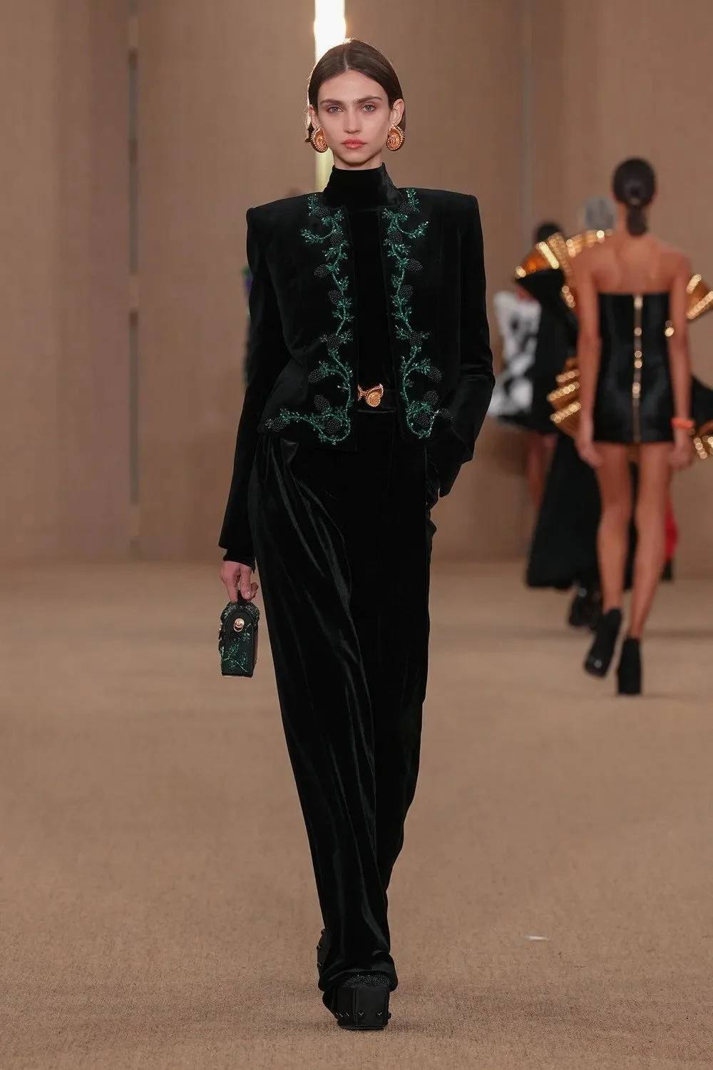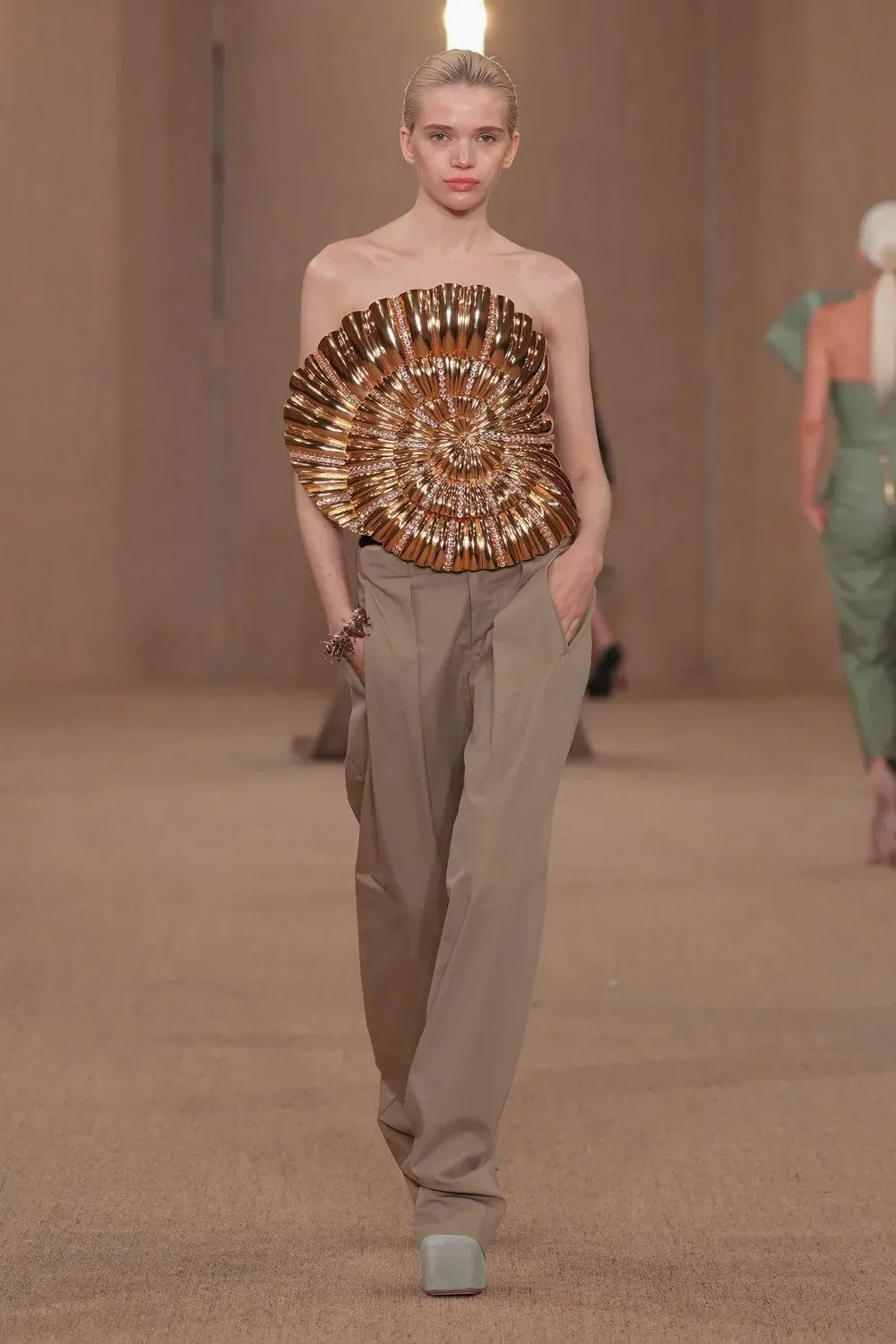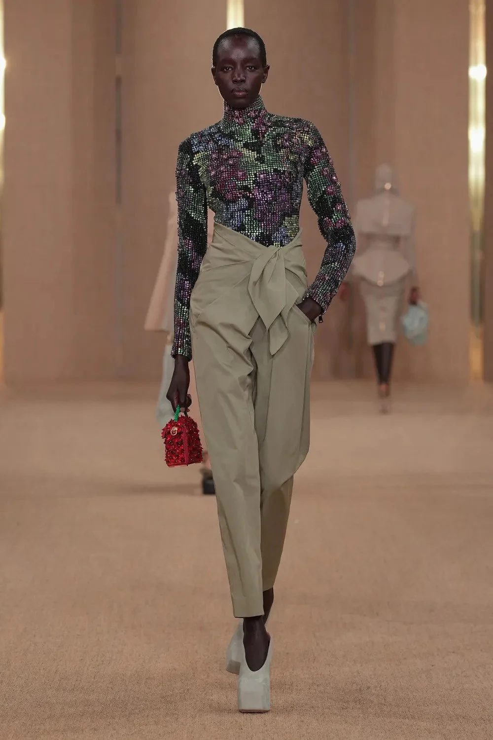 Naturally, Gucci’s show took place in a London landmark that speaks to this new vision: the Tate Modern, or more specifically, the Blavatnik Building - De Sarno has an undeniable preference for brutalist settings. This time, however, the industrial edge is met with a natural softness, as the concrete walls magically grow vegetation.