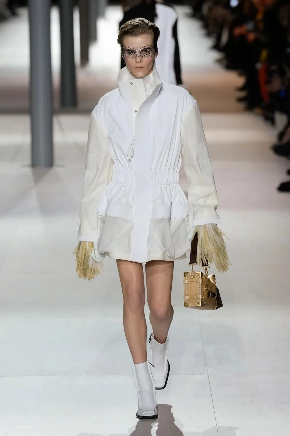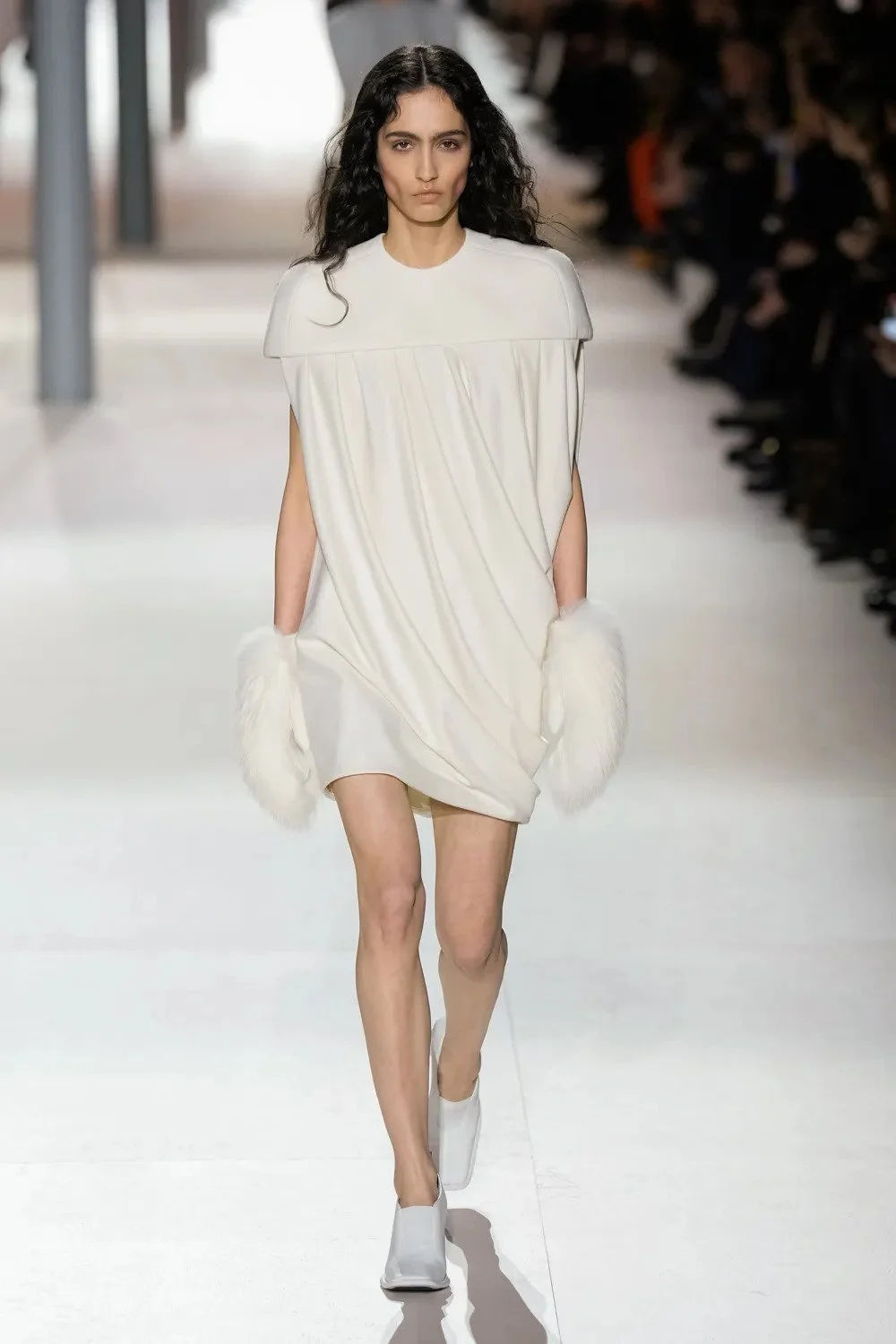 Despite the distance from De Sarno’s and Guccio Gucci’s London, there were some faint Victorian tinges, particularly in intricate white lace pieces ranging from skimpy sets to tight maxi dresses.
