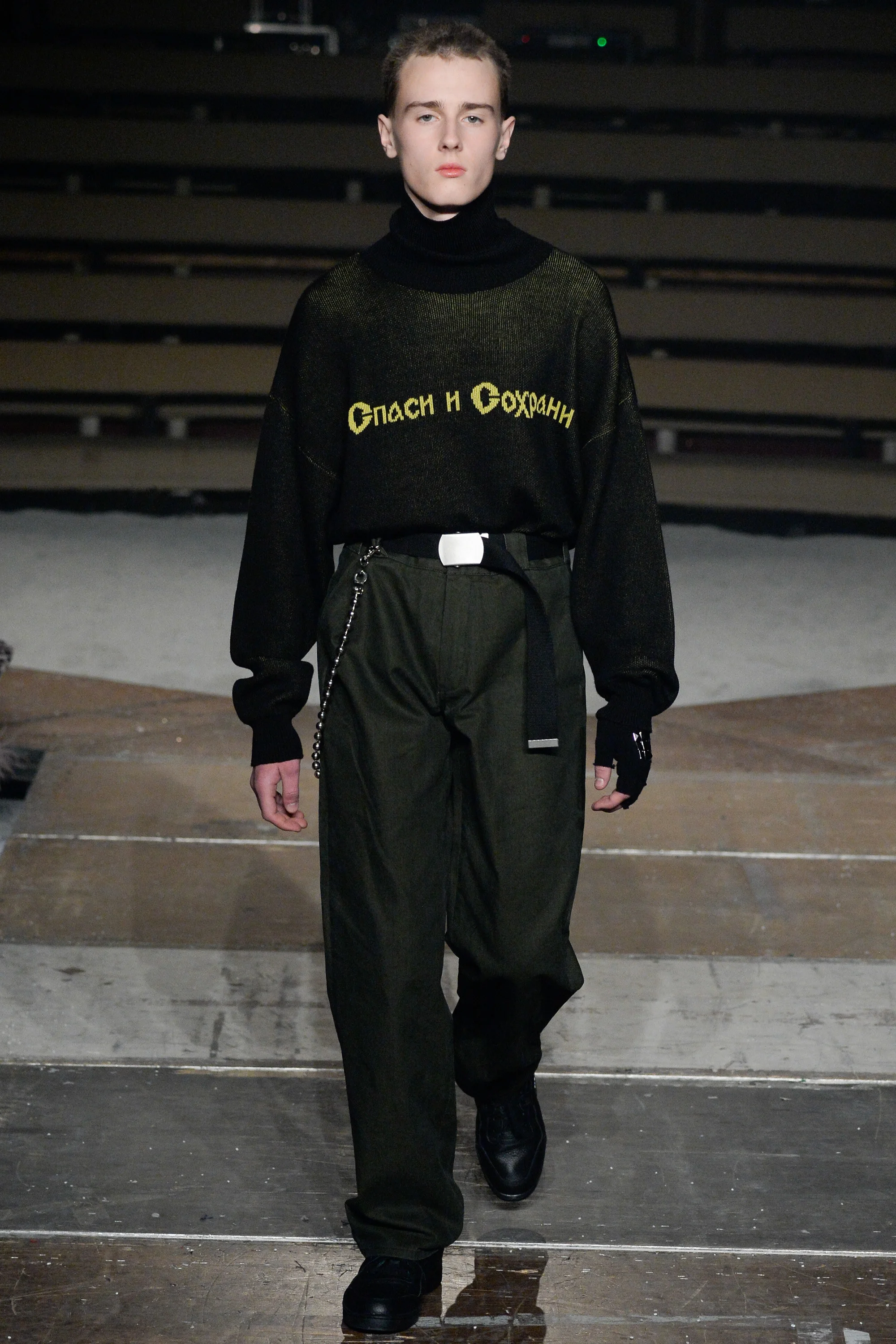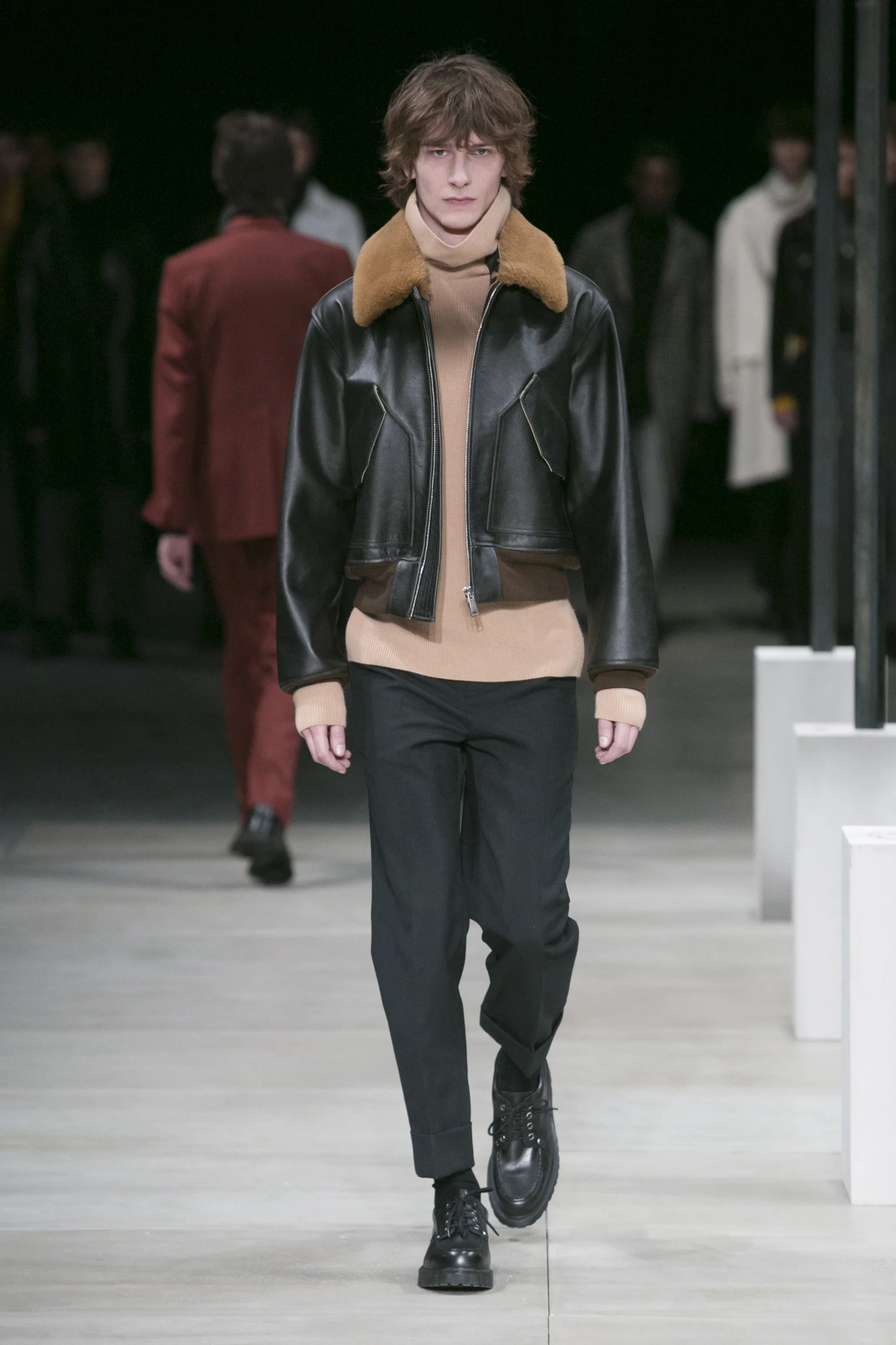 Attracted by the power of the flower -as a natural wonder and symbolic expression of change- Abloh focused on a vision of masculinity in motion, giving his silhouette a languid and fluid feel. Pleated, pressed-crease trousers were loose and voluminous, while a mauve shirt in nappa goat leather featured one single oversize pocket, which is all that you need to carry life’s essentials. That generosity also defined Abloh’s outerwear, which was on the roomy side again, and included lightweight parkas and hooded anoraks, as well as military-inspired styles and generous trench coats. Contrived effects are not relevant in menswear right now and the designer fully embraced this longing for ease.