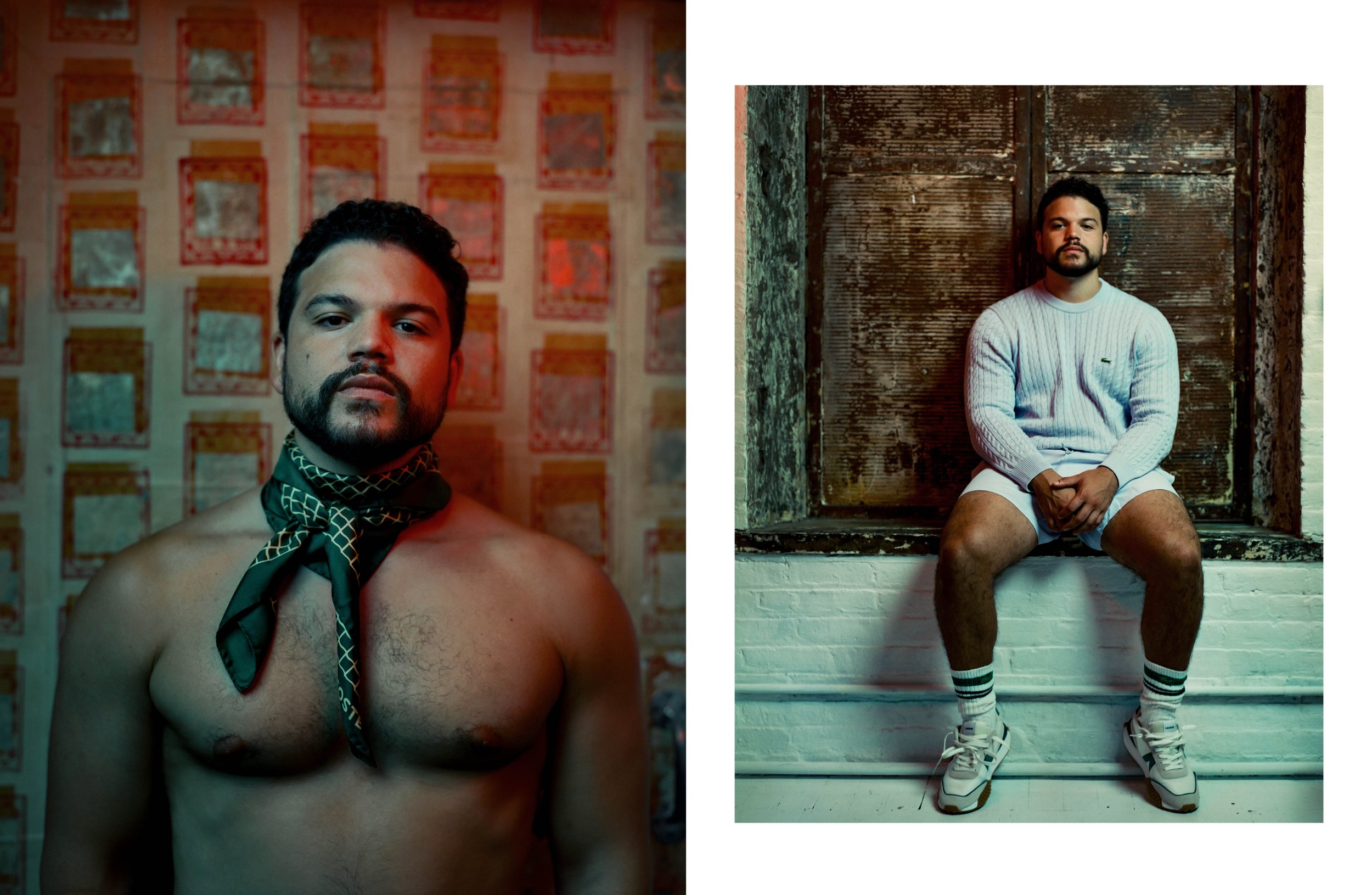 JOSH RIVERA’S LATEST ROLE HAS BEEN A HIGH-INTENSITY WORKOUT. STARRING AS A LEAD IN AMERICAN SPORTS STORY: AARON HERNANDEZ – A NEW FX SERIES FROM RYAN MURPHY – WAS CHALLENGING BOTH WHEN IT COMES TO THE SHEER AMOUNT OF SHOOTING HOURS (AND THE DAILY CALORIE INTAKE TO BULK UP), AS WELL AS THE SERIOUSNESS OF THE DEPICTED SUBJECT MATTER. AFTER ALL, HOW EASY CAN IT BE TO PLAY SOMEONE WHO IN THE MINDS OF MANY IS A HOT-HEADED AND RUTHLESS KILLER? IN HIS PORTRAYAL, RIVERA SUCCEEDS IN SHOWCASING THE OTHER SIDE OF THE INFAMOUS NFL PLAYER – AN INSECURE YOUNG MAN WHO FEARS THAT HIS SEXUALITY WILL BE EXPOSED, AND WHO WILL DO ANYTHING TO KEEP HIS IDENTITY A SECRET. FOR BTB, RIVERA TELLS US ABOUT DIVING DEEP INTO HERNANDEZ’S TRAGIC LIFE STORY, FEELING AFFECTED WHILE FILMING THE BRUTAL SCENES, AND LEARNING HOW TO CATCH A BALL.