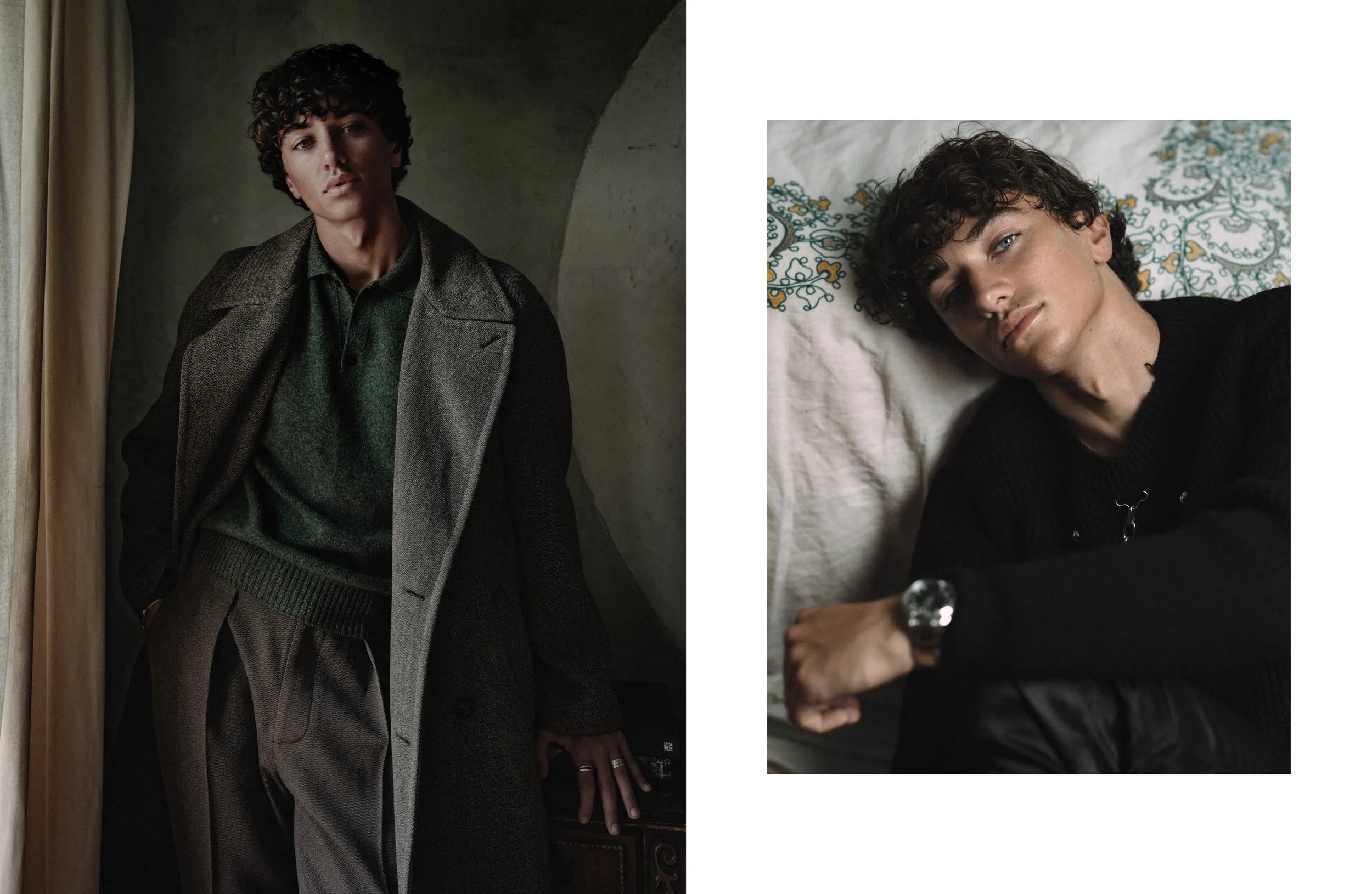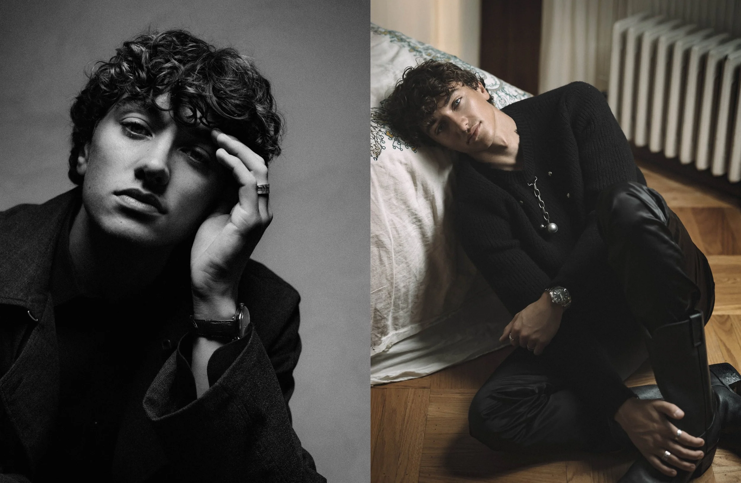 Left Jacket and top Dior Men, watch Omega