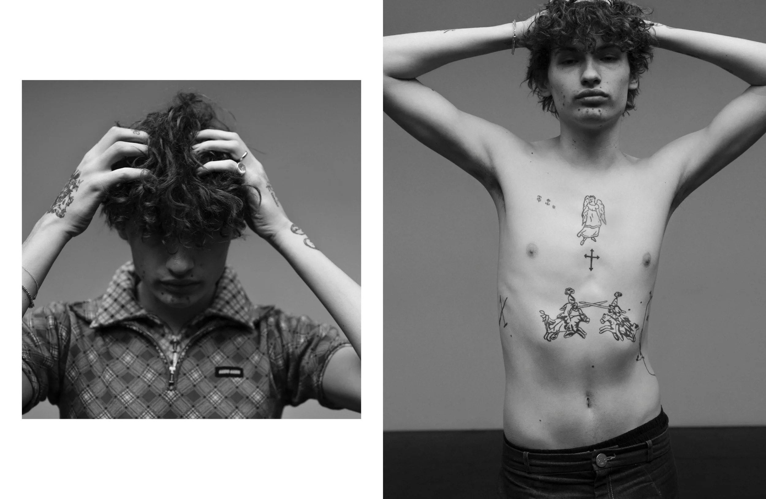 FOLLOWING A TOUR AROUND EUROPE, GLAIVE IS BACK AT HOME – IN ASHEVILLE, NORTH CAROLINA, TO BE EXACT. SINCE LEAVING THE TOWN IN EARLY JANUARY, THE AMERICAN SINGER HAS BEEN EVERYWHERE FROM LONDON TO VIENNA TO WARSAW. NOW, DURING SOME MUCH-NEEDED REST, HE’S PREPARING TO WRAP UP HIS LATEST ALBUM. THOUGH BEST KNOWN FOR HIS SOMBRE SONGS, THIS TIME AROUND, THE FEELING OF JOY SEEMS TO BE PREVAILING, IN BIG PART THANKS TO HIS CURRENT SPIRIT ANIMAL, FOOTBALL ICON MARIO BALOTELLI. INSPIRED BY HIS BADASS ATTITUDE, GLAIVE IS CREATING MUSIC EVOKING THE EUPHORIC STATE OF A BUZZY STADIUM. WE’RE LOOKING FORWARD TO SEEING HOW HE SCORES!