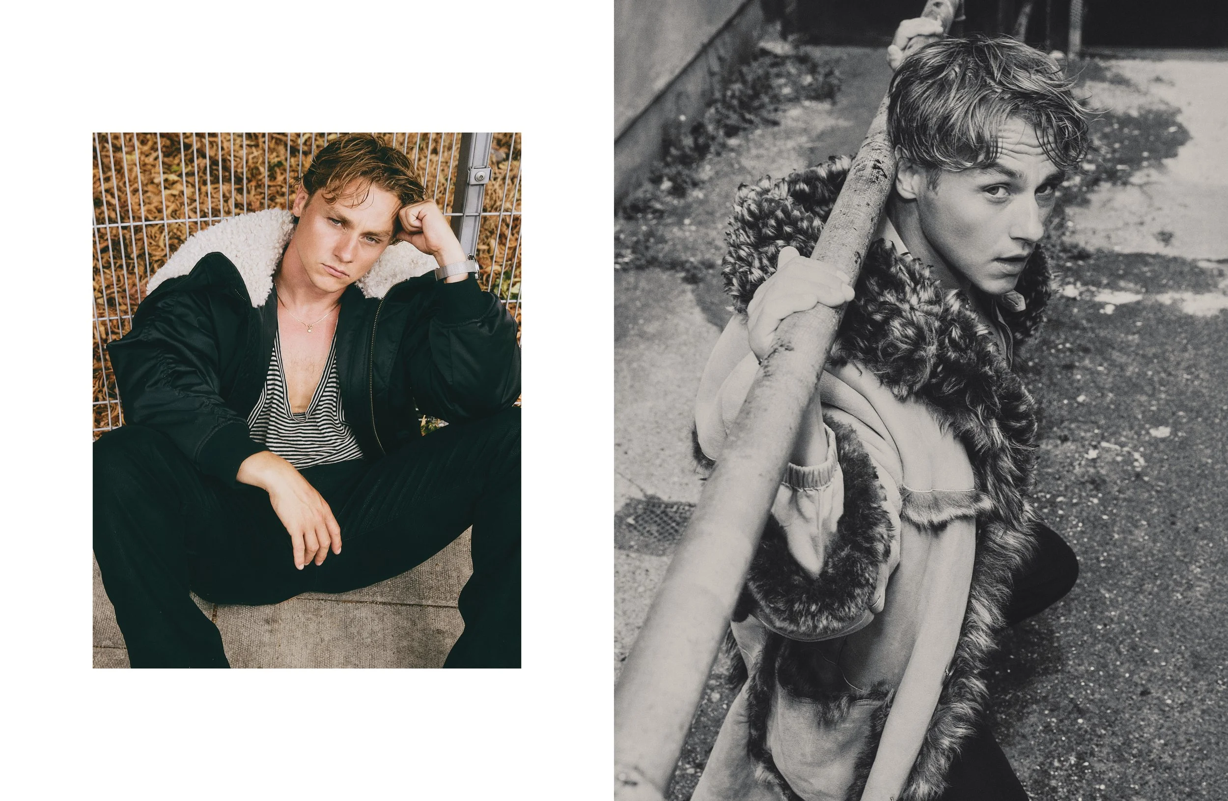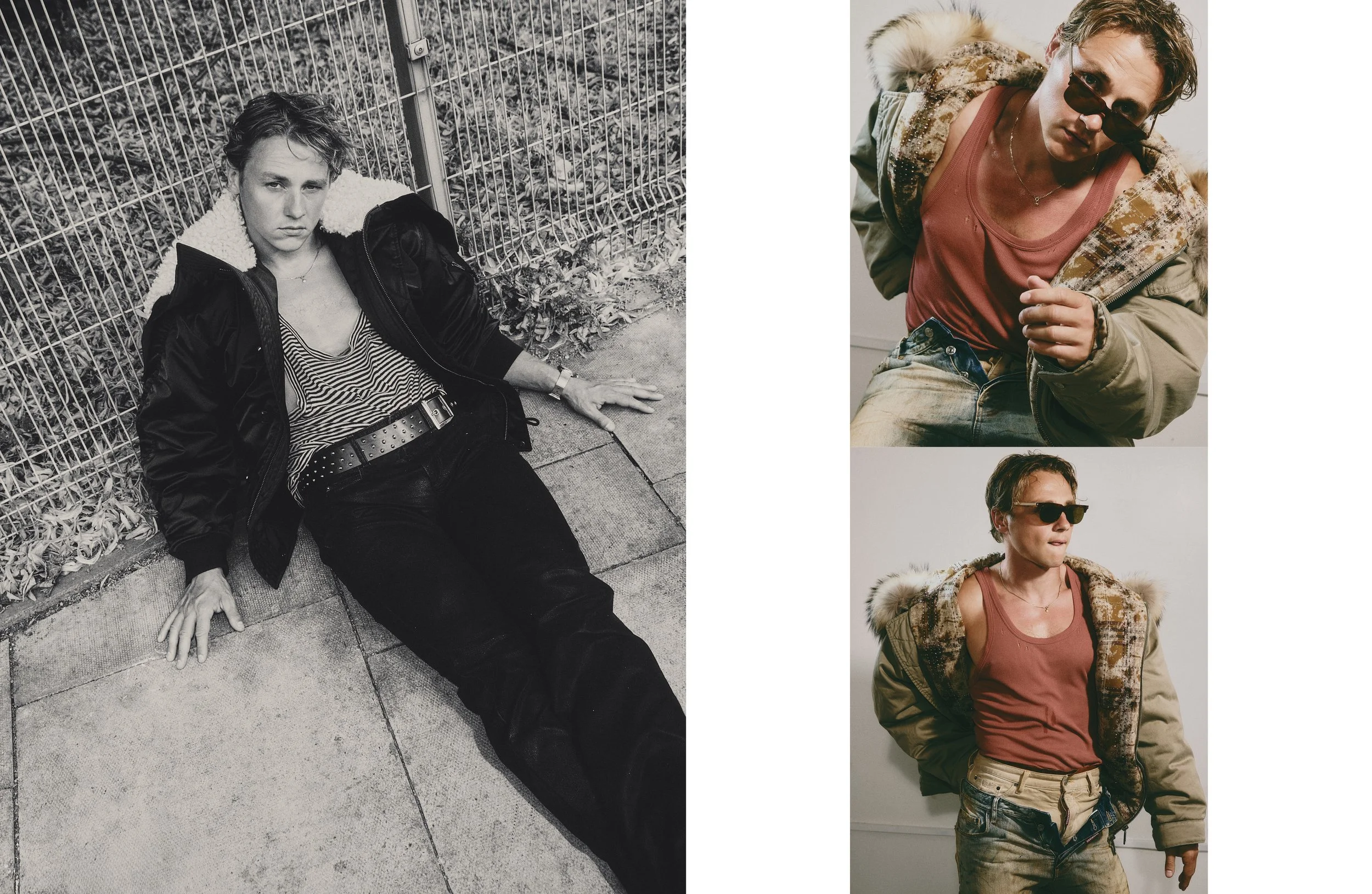 Right Jacket, shirt and denim Paul Smith, belt The London Leatherman, watch Omega
