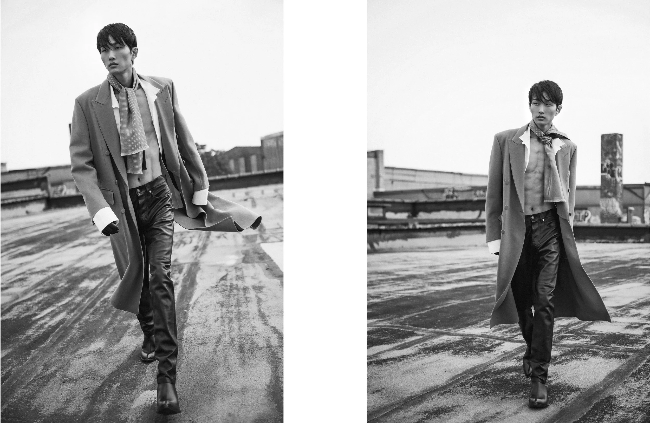 Coat, pants, scarf, brooch Dolce & Gabbana, shoes Dior Men