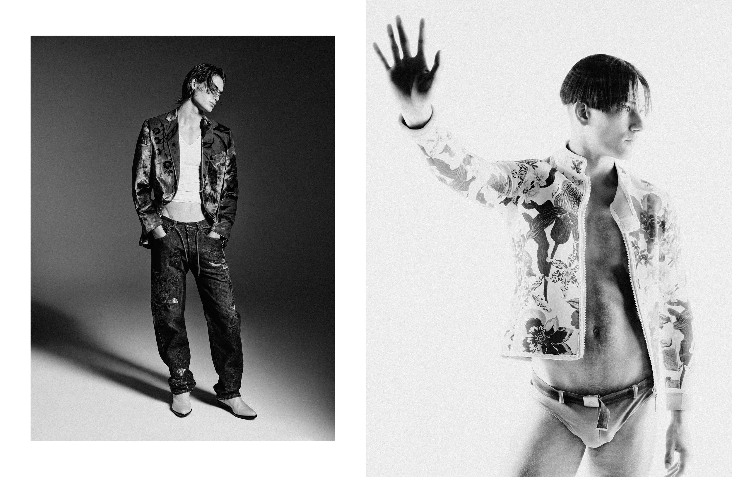 Right Jacket and boots stylists's own, shirt Balmain Homme, pants Dsquared2