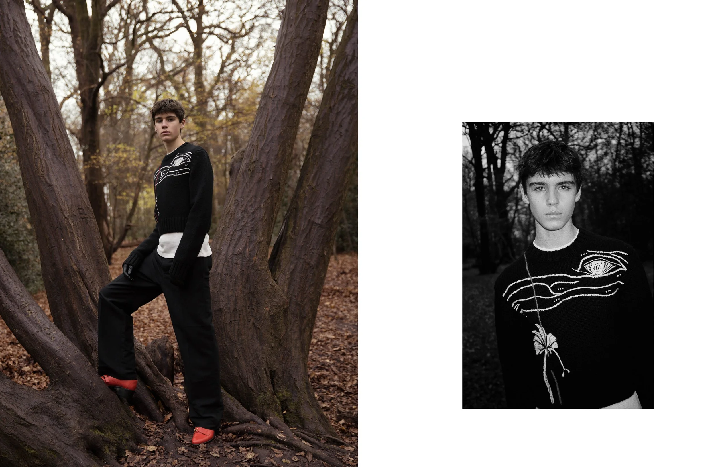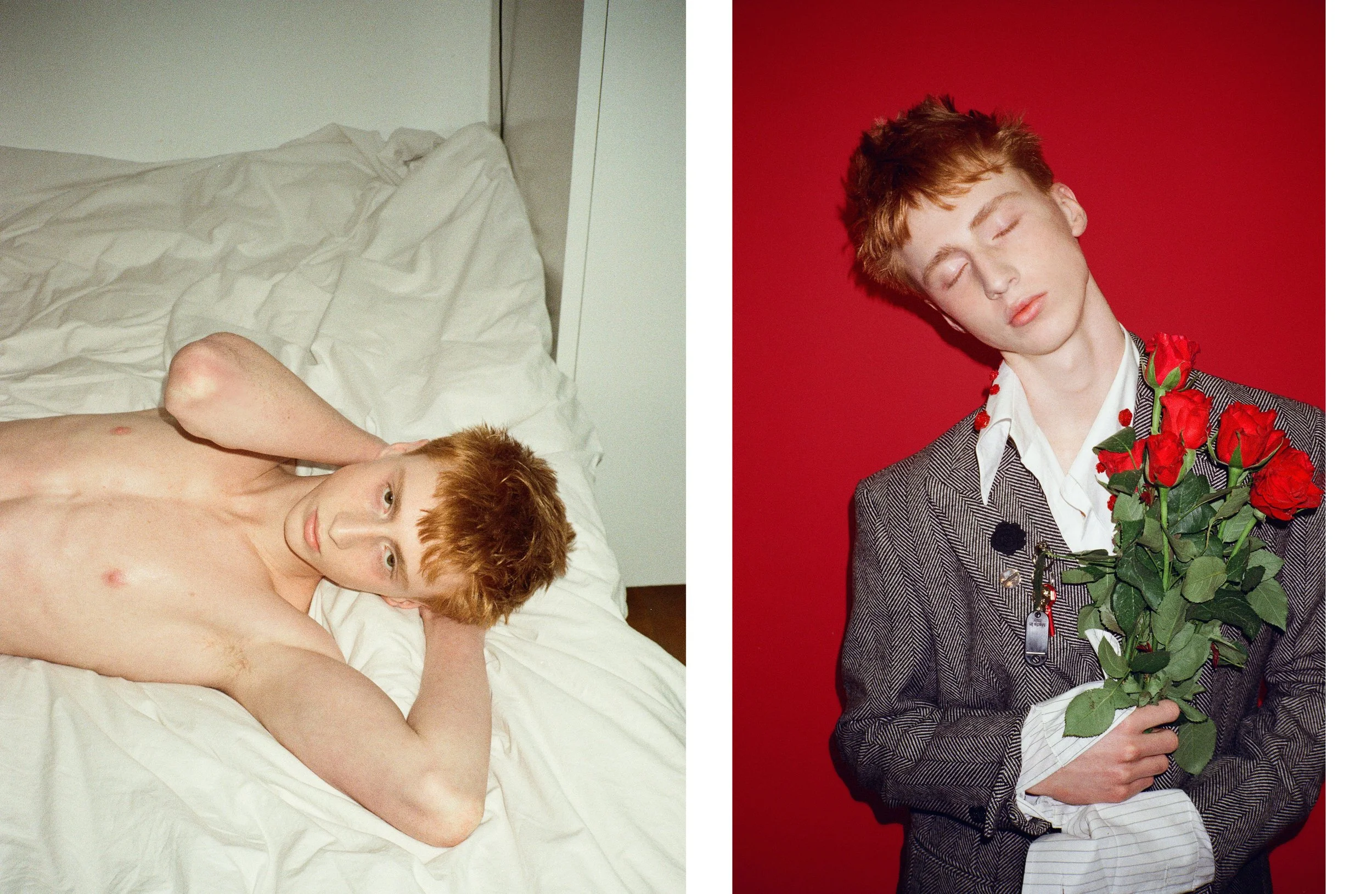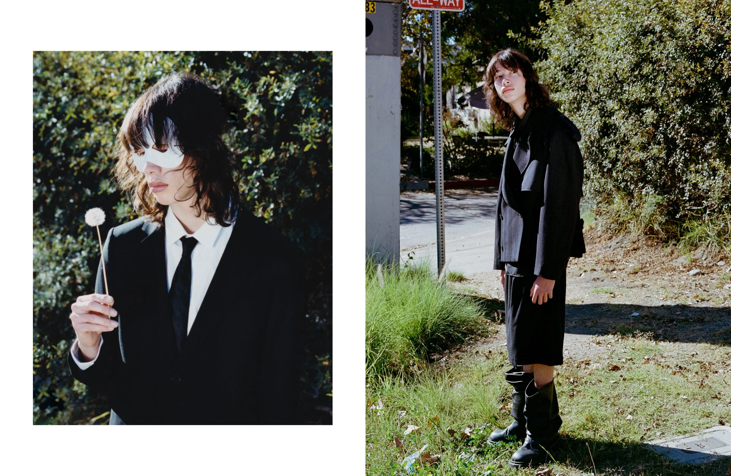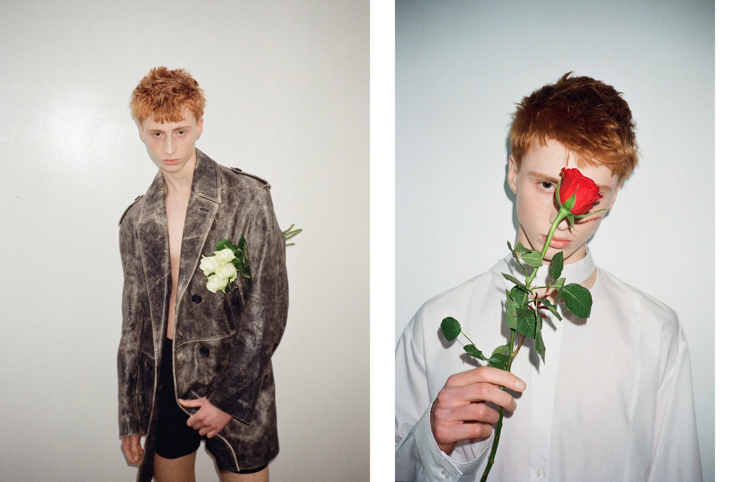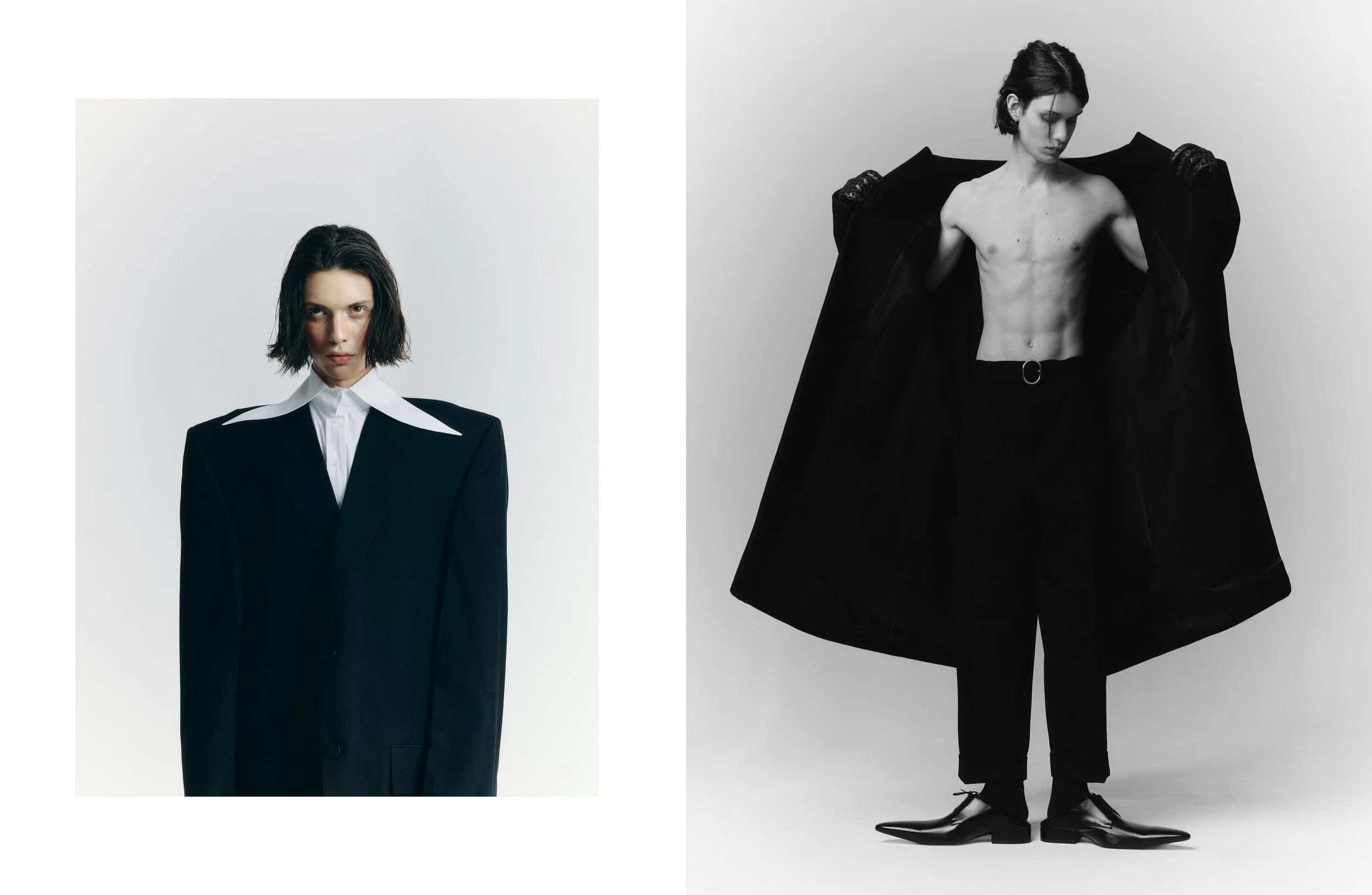 Jacket, shirt, pants, bag, earrings Dior Men, gloves Saint Laurent by Anthony Vaccarello