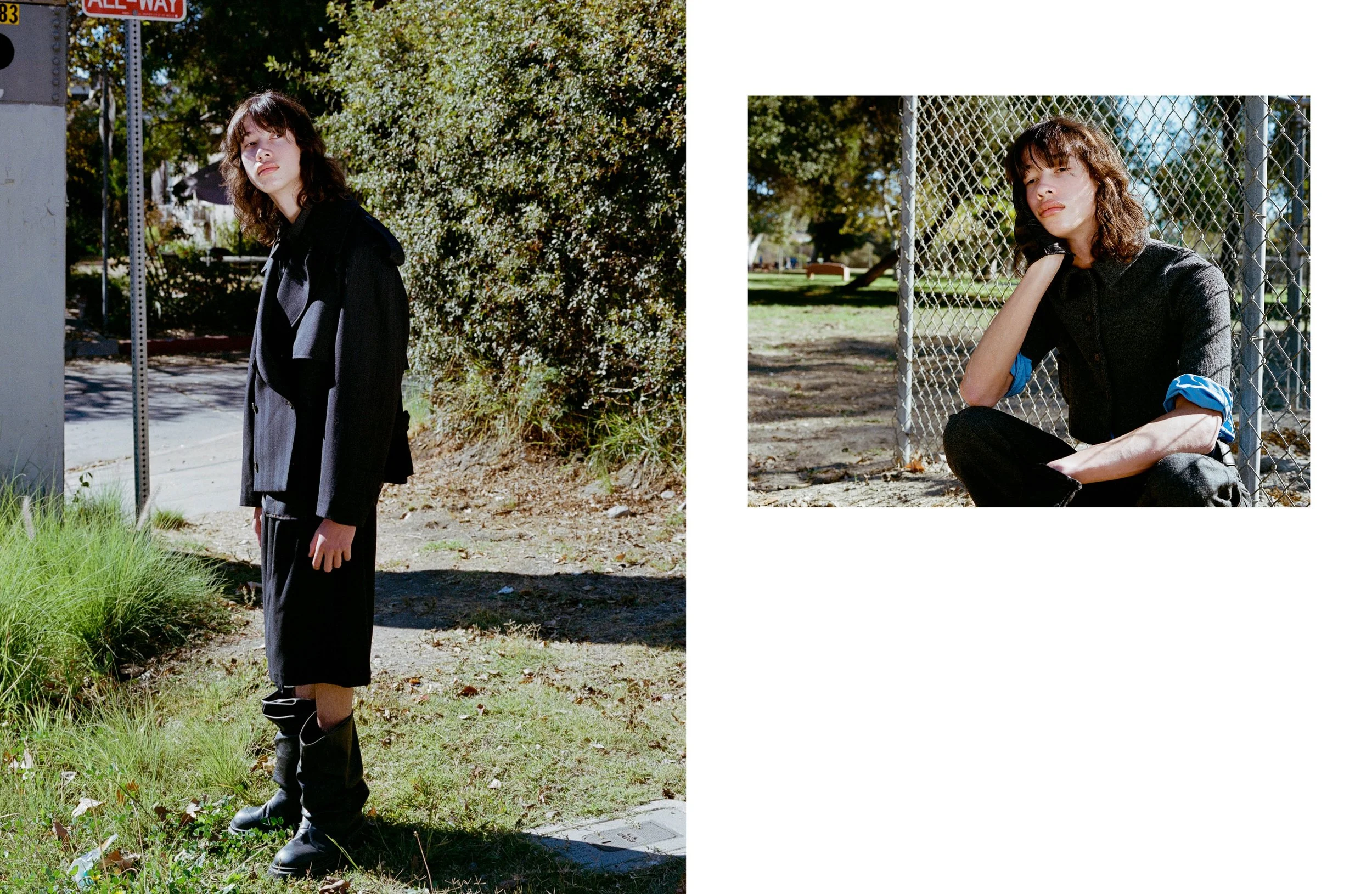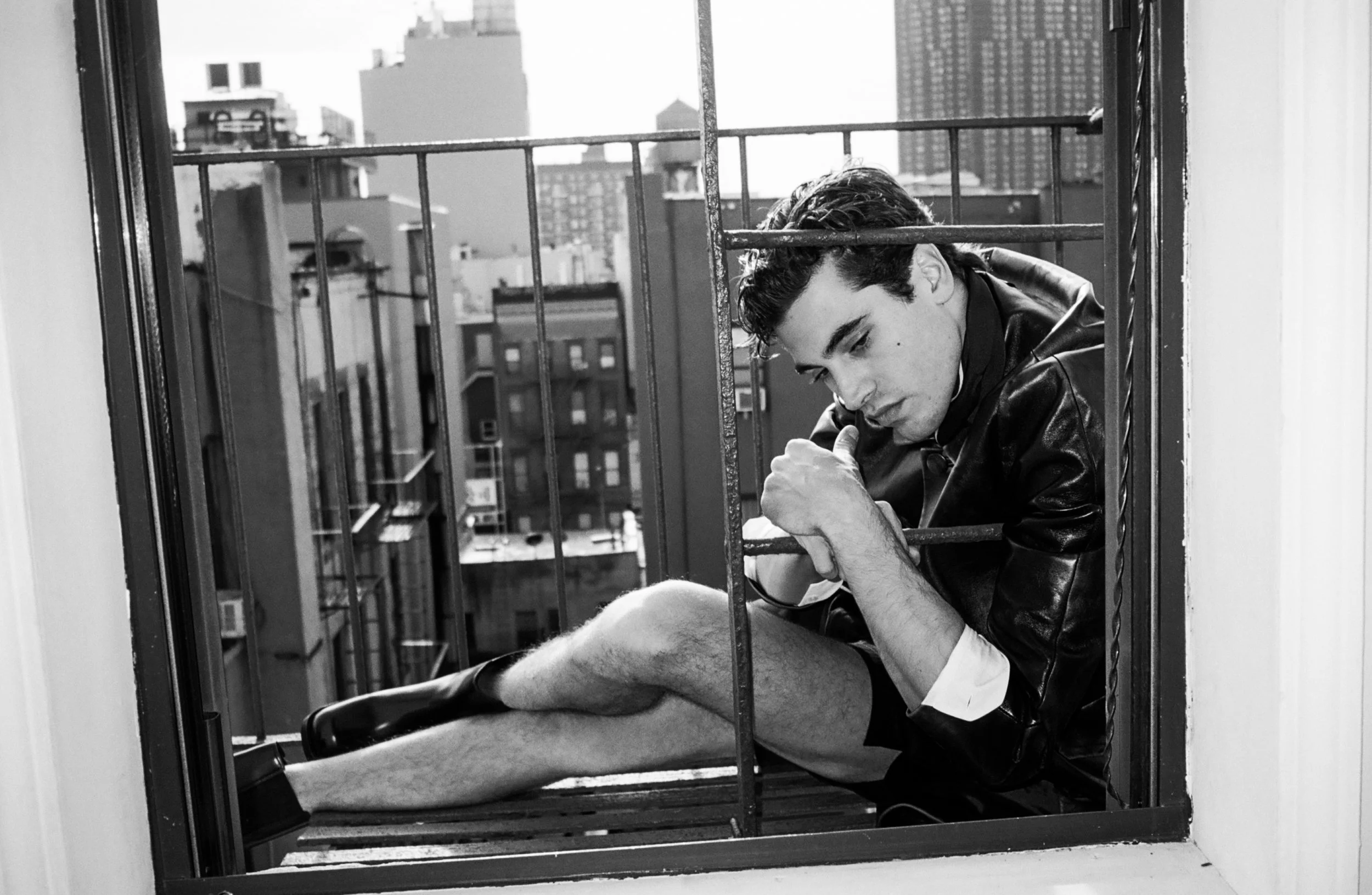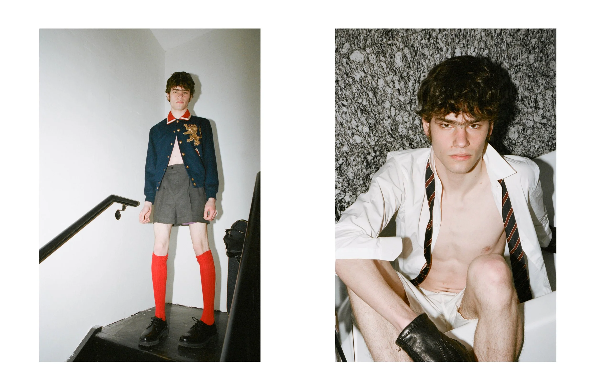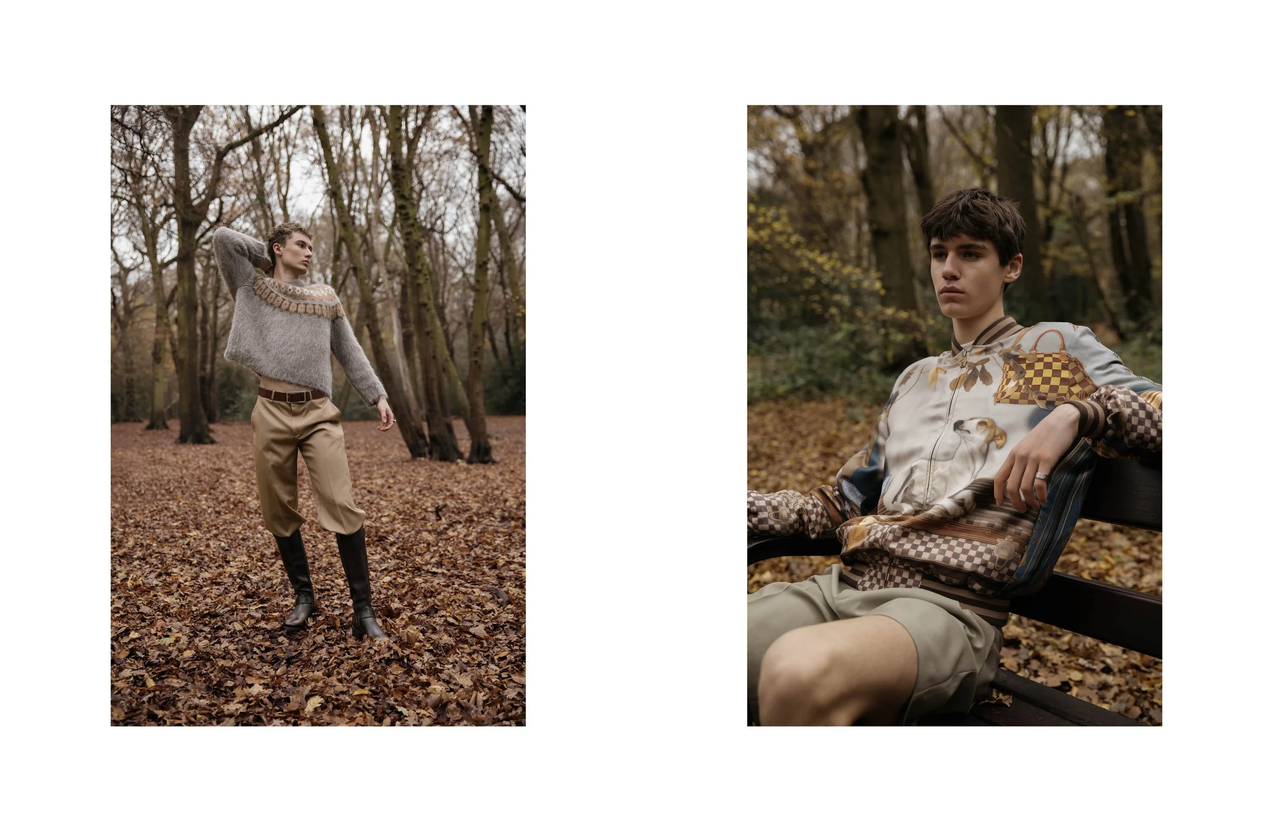 Jacket, shirt, pants, bag, earrings Dior Men, gloves Saint Laurent by Anthony Vaccarello