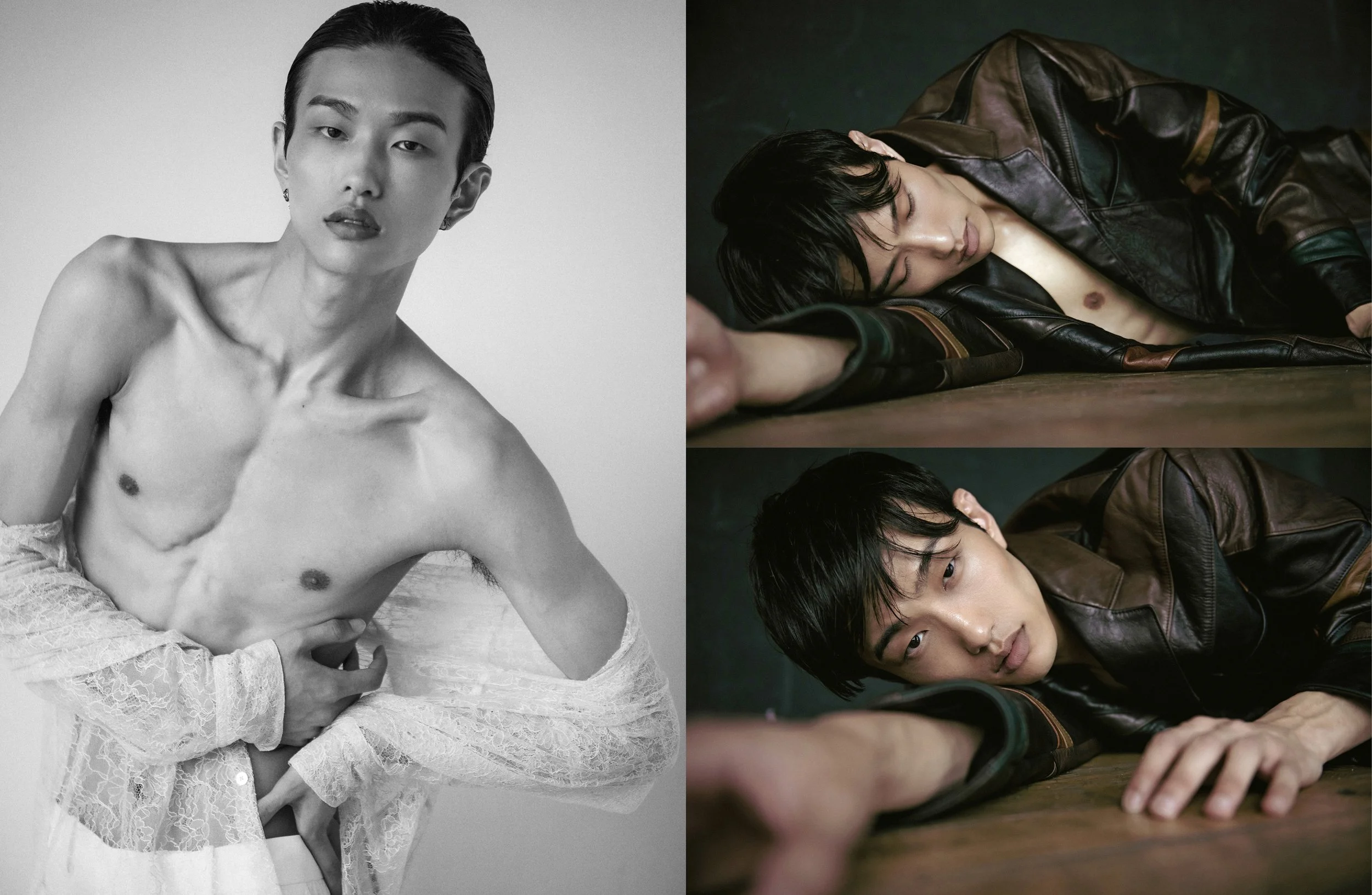 Left Jacket, shirt, pants, bag, earrings Dior Men, gloves Saint Laurent