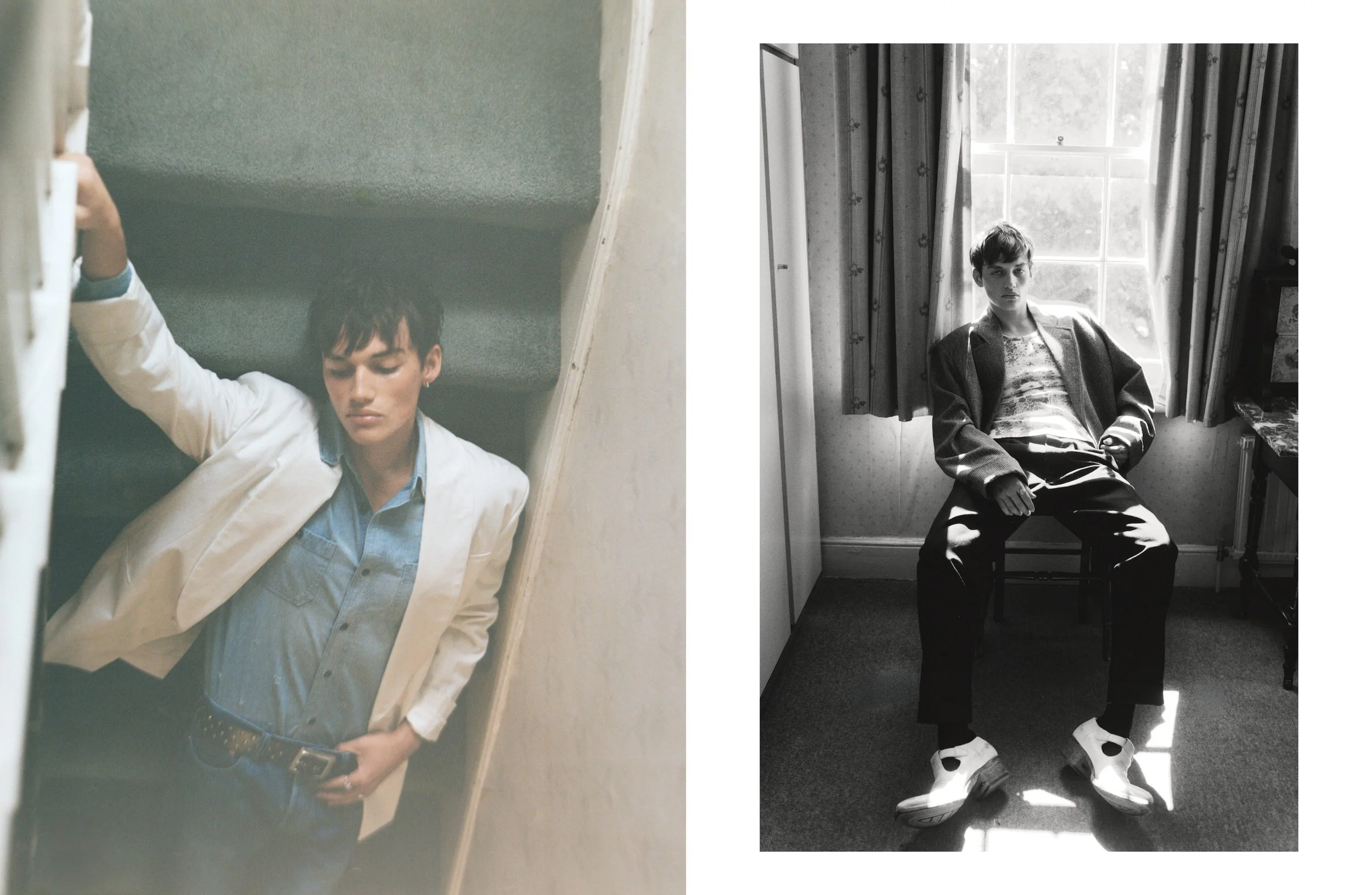 Left Right Shirt and pants Blue Blue, blazer Bianca Saunder, belt The London Leatherman