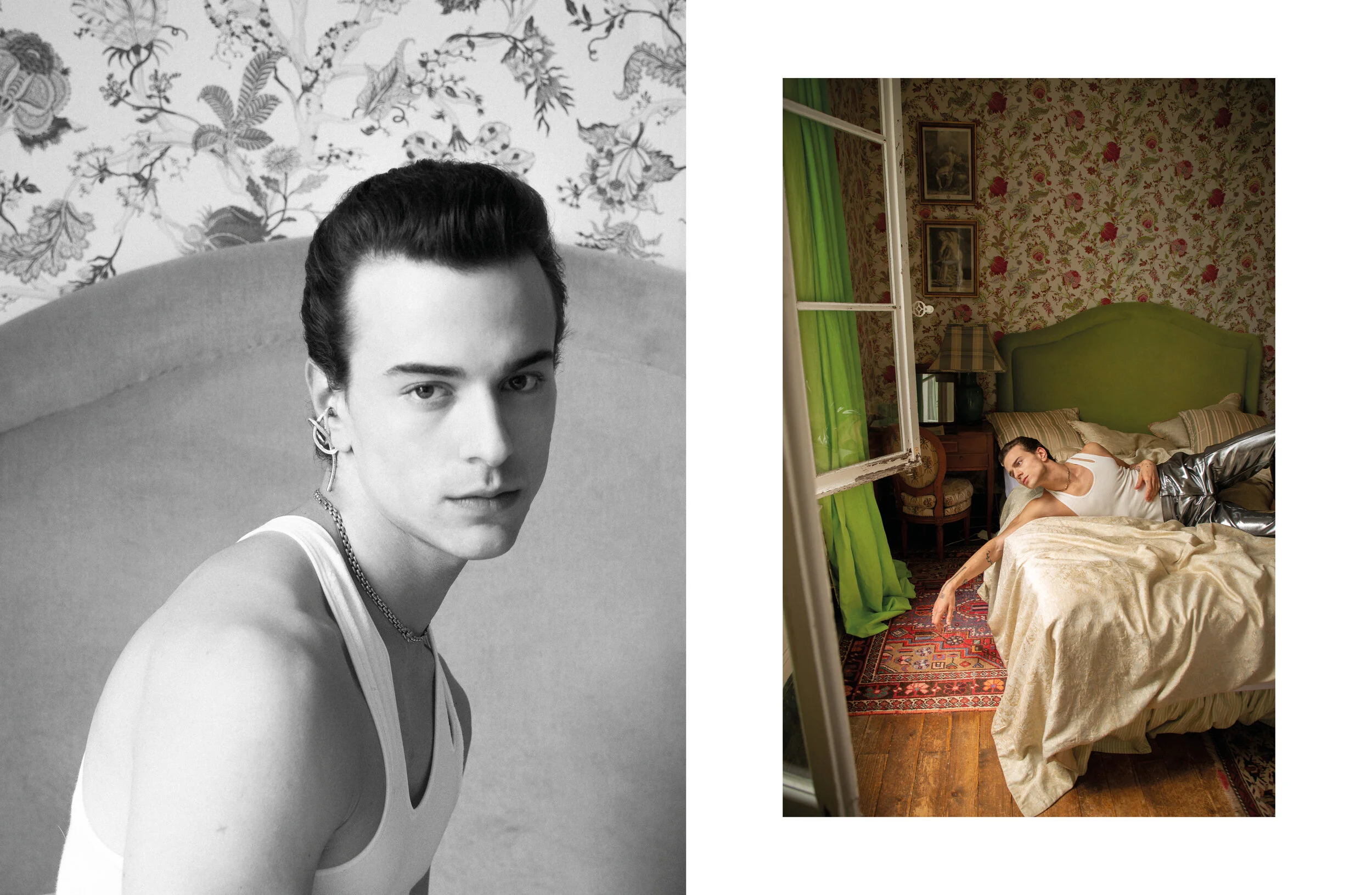 Right Jacket, turtleneck and trousers Dior, Loafers Hermes