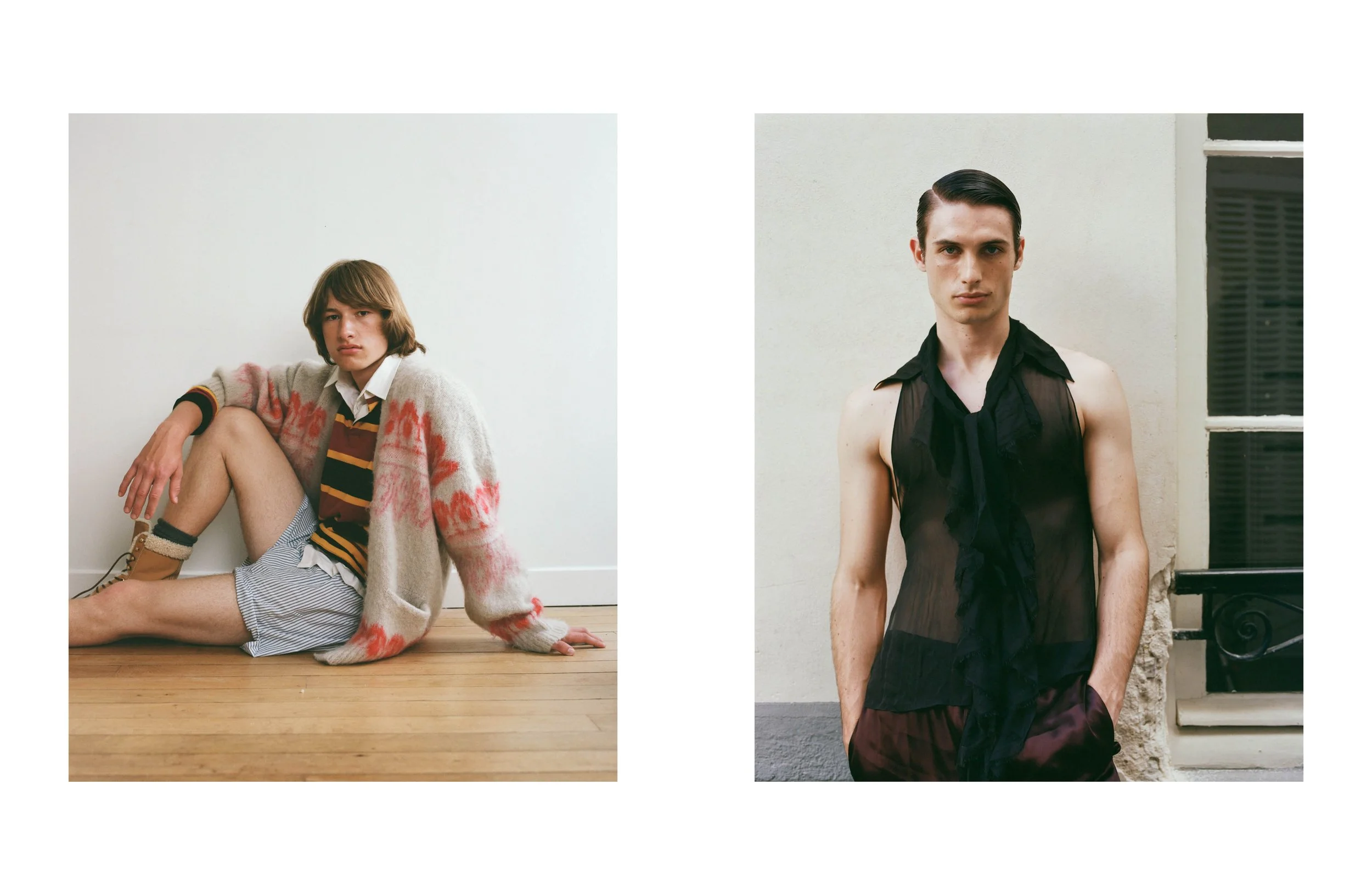 Left Cardigan Isabel Marant, polo shirt and boots Celine Homme, underwear model’s own