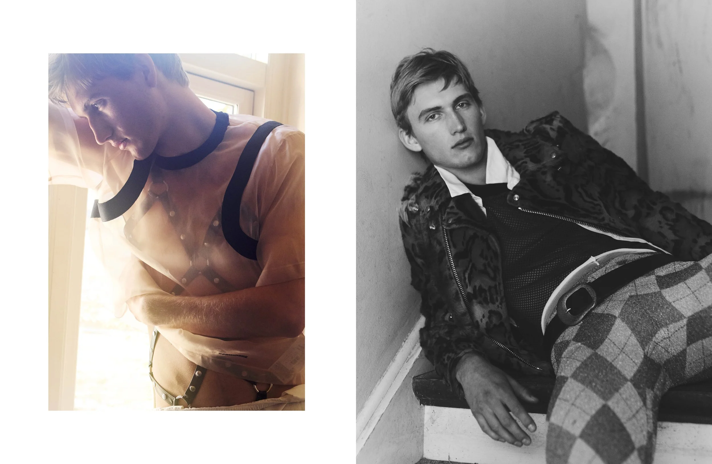 Right Jacket and boots stylists's own, shirt Balmain Homme, pants Dsquared2